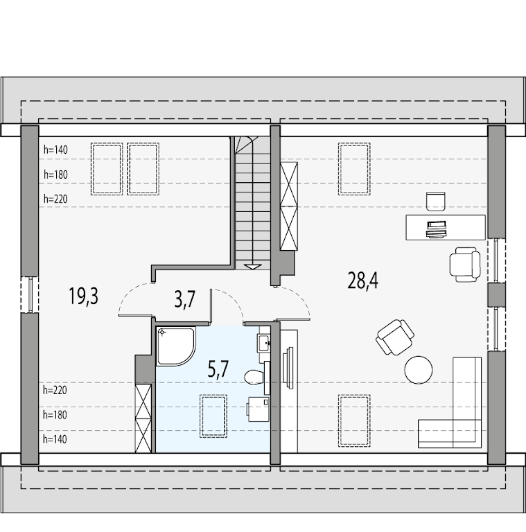 Wersja ekonomiczna stanu deweloperskiego uwzględnia instalacje, urządzenia i materiały ze średniej półki cenowej, charakteryzujące się standardową jakością.