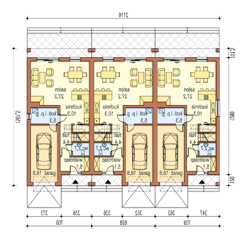 - Min. wymiary działki:11,08 x 22,01 m