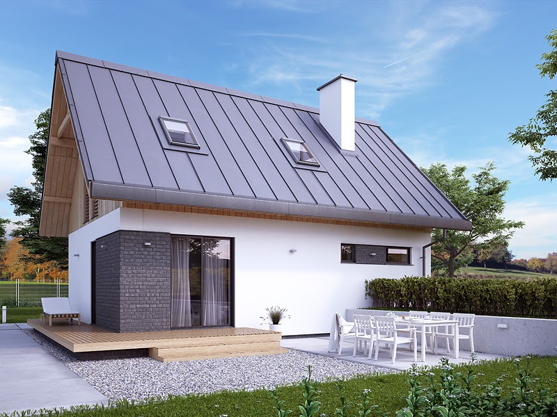 - Dach: blacha na rąbek stojący Classic (Ruukki), kąt nachylenia 45°.