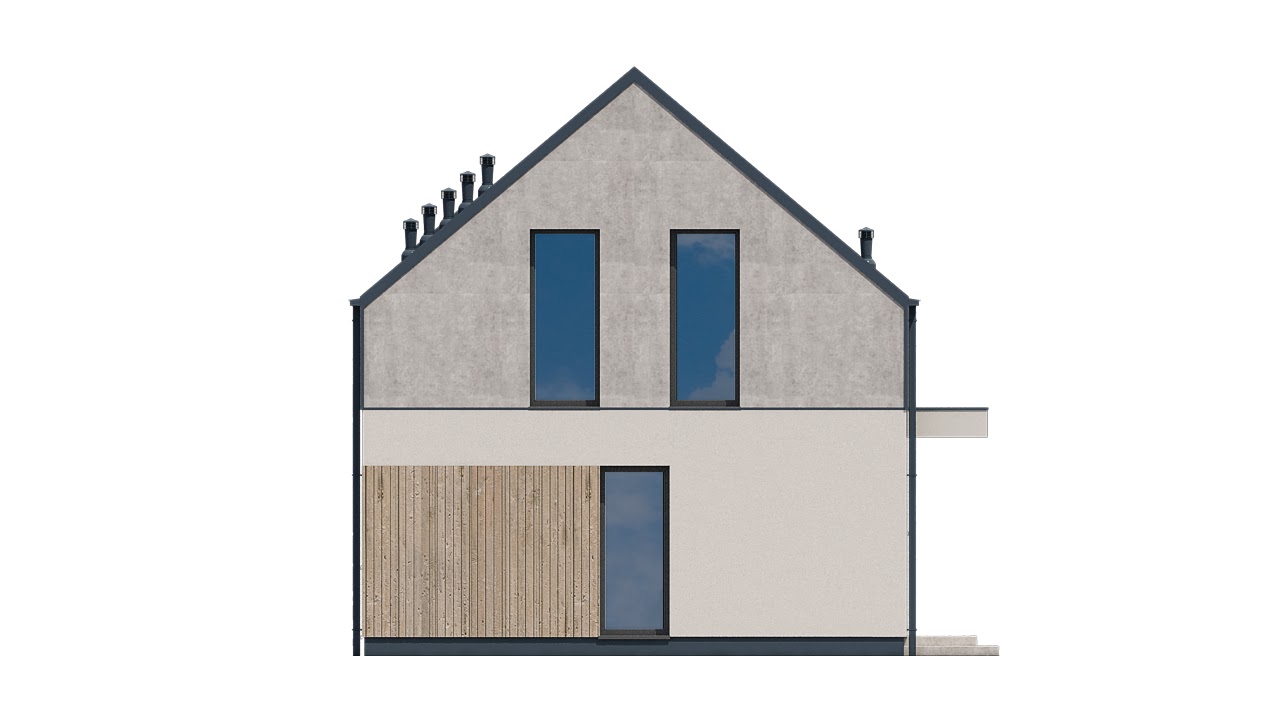 • Elewacje: tynk cienkowarstwowy, panele drewniane, beton architektoniczny, blacha na rąbek.