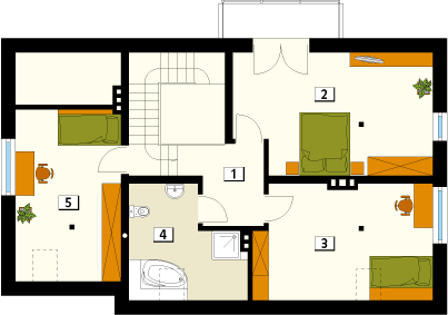 Komfortowy, niebanalny, przytulny i zarazem elegancki – tak w kilku słowach można opisać projekt Szafran 6 CE. Jest to parterowy, murowany dom z poddaszem użytkowym, w którym wygodnie zamieszka czteroosobowa rodzina. Szafran 6 CE przykuwa uwagę swą klasyczną bryłą, której nadano bardzo uniwersalny wygląd, wykańczając budynek w bardzo nowoczesny sposób - jasną elewację łącząc z drewnianą okładziną. Zwartą bryłę budynku urozmaicono przeszklonym wykuszem, powiększającym powierzchnię pokoju dziennego. Nad wykuszem ulokowano stylową, trójkątną lukarnę z kameralnym, przeszklonym balkonem.