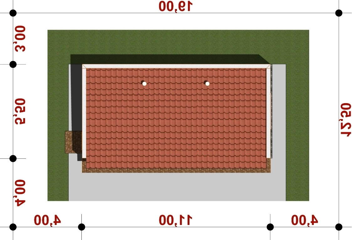 Projekt garażu trzystanowiskowego, parterowego, niepodpiwniczonego, przeznaczonego dla samochodów osobowych. Do projektu dołączone jest zestawienie: stali, więźby dachowej oraz stolarki drzwiowej i okiennej, jak również bezpłatna zgoda na dokonanie zmian.