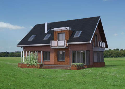 Technologia i konstrukcja: murowana – ceramika Ściany zewnętrzne: pustak ceramiczny typu U-220 gr. 25 cm + docieplenie styropianem 10 cm + cegła elewacyjna Ściany wewnetrzne: konstrukcyjne: pustak ceramiczny typu U-220 gr. 25 cm, działowe: cegła kratówka gr. 12 cm Strop: gęstożebrowy typu ACKERMANN Konstrukcja dachu: drewniana, jętkowa Rodzaj schodów: żelbetowe Typ ogrzewania: kocioł na gaz Aneks na paliwo stałe: na zamówienie Wykończenie: Pokrycie dachu: dachówka betonowa lub ceramiczna BRAAS Elewacja: cegła elewacyjna, podmurówka: cegła elewacyjna |
